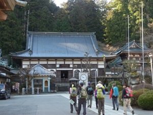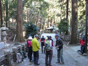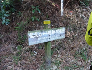 見通しのきかない山道をしばらく登ると、途中の小屋で一休み。 |